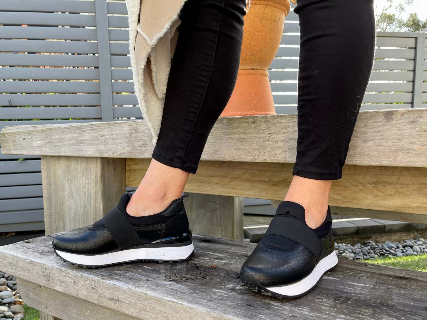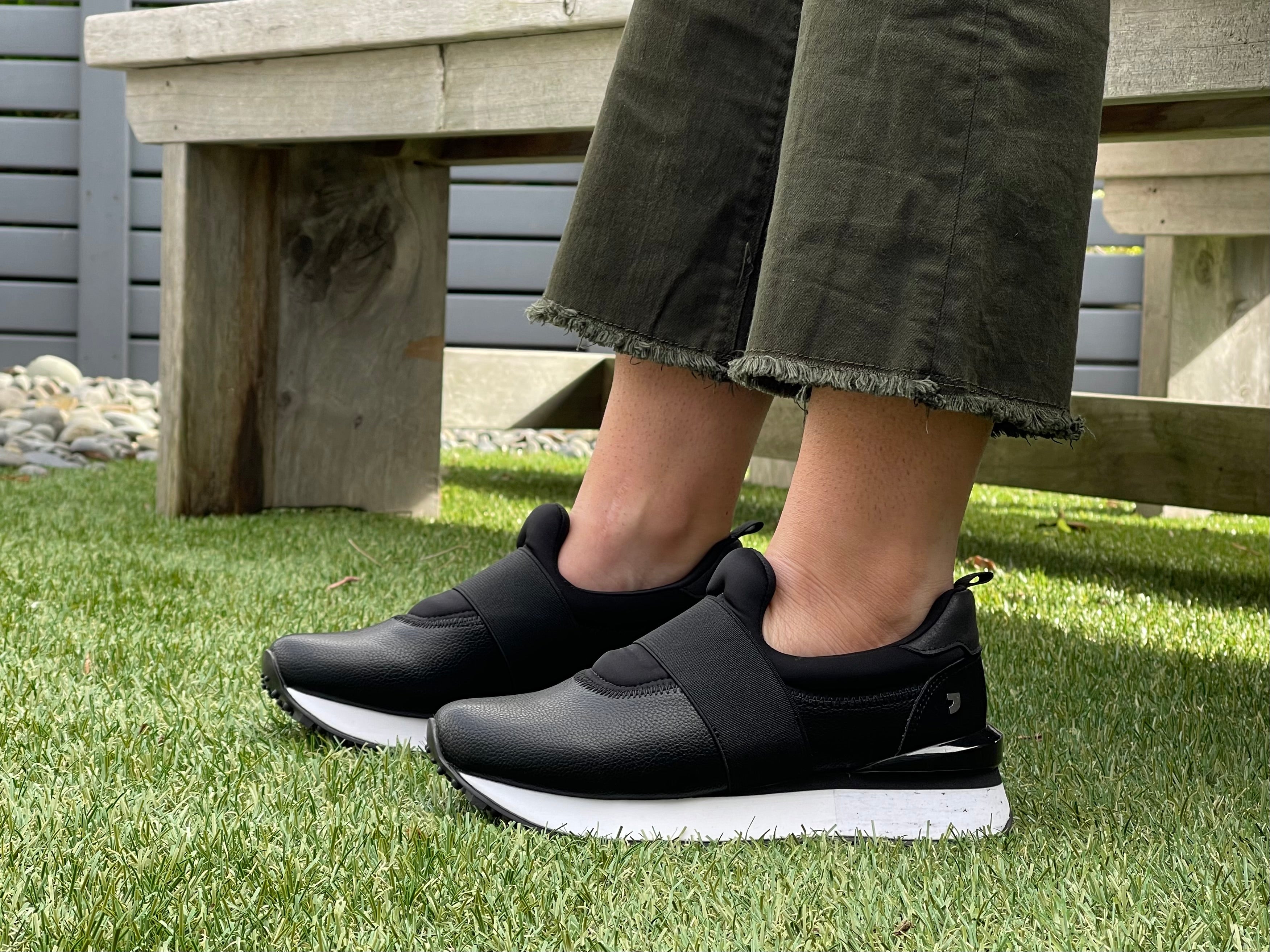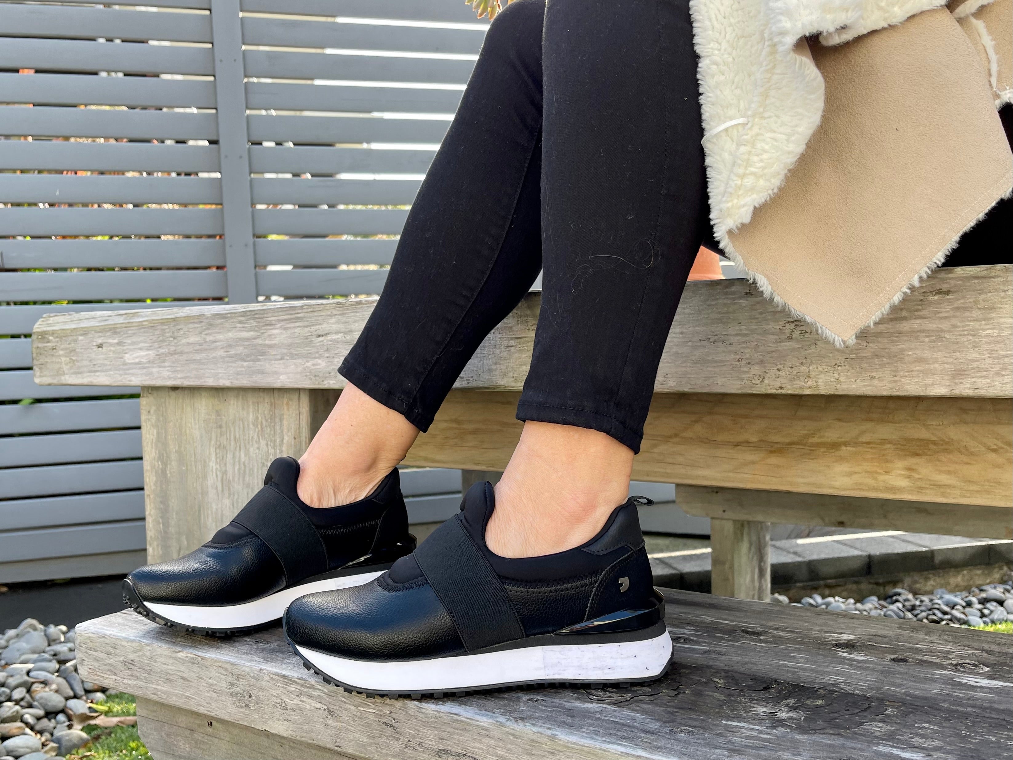 Gioseppo Harper. This sneaker ticks all the boxes when it comes to comfort, functionality and style. Luxe pull on with a nappa upper and neoprene tongue that shapes and molds to your foot with reinforced elasticated top band. Suede heel counter and funky rubber sole with a heel height of 4cm and platform of 2.5cm finished with removable insoles and Gioseppo's signature band across the heel unit.