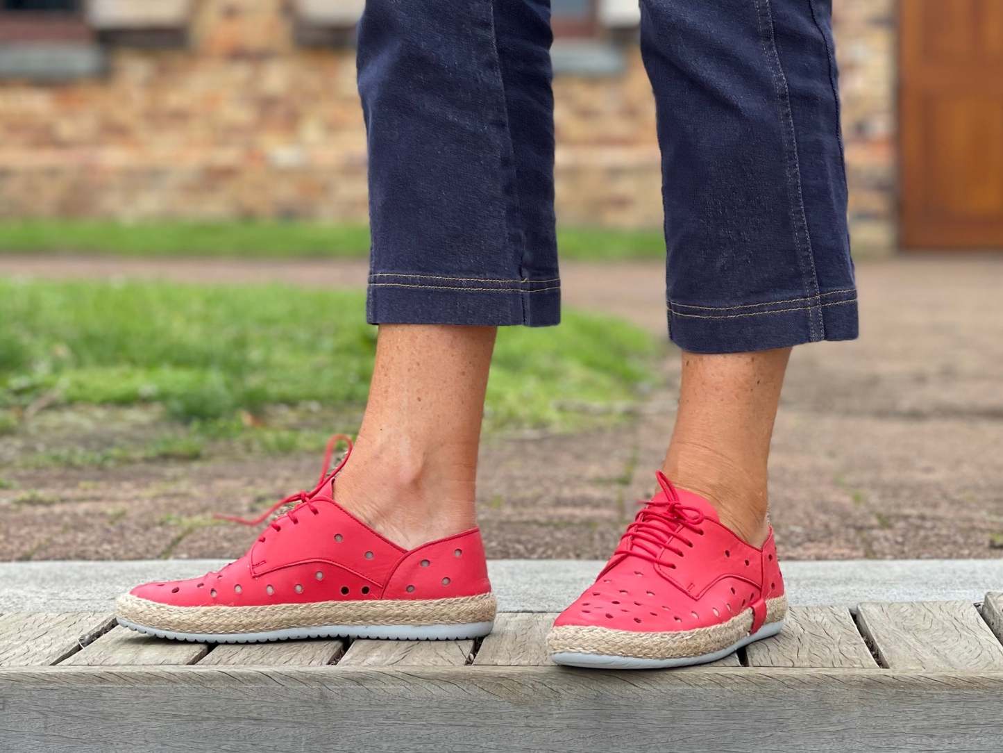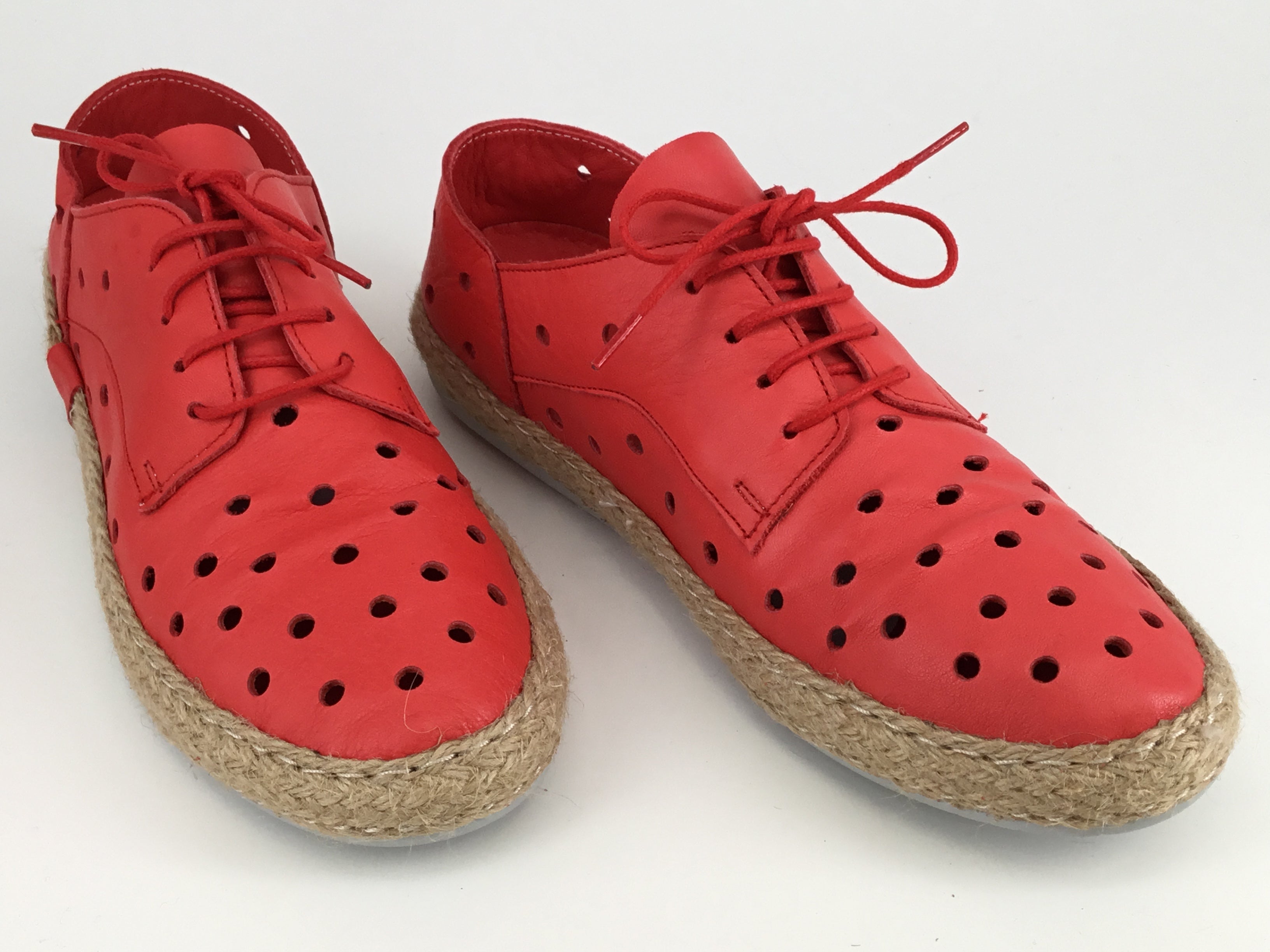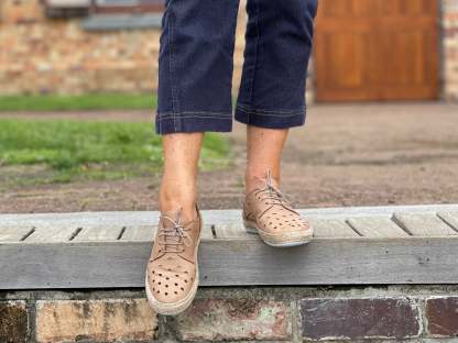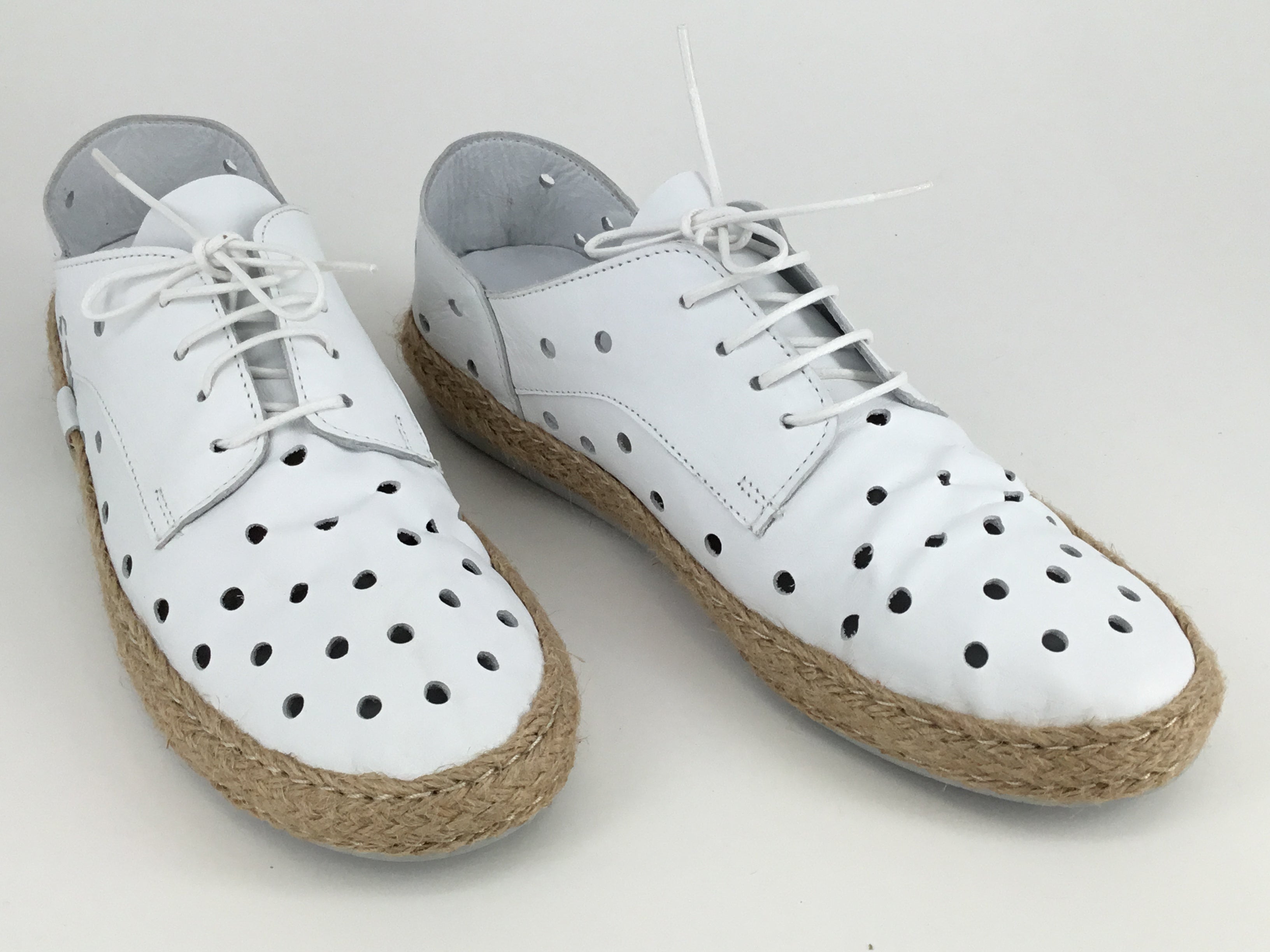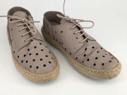 Via Nova Bellair from Turkey is lightweight, flexible and has the added benefit of padded removable inners, perfect for those with orthotic requirements. Perforated upper with woven jute espadrille detailing around the footbed.